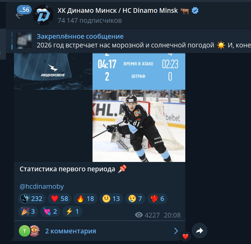 Есть ещё канал нашего спортивного телепроекта @sport5by. Спросил в комментариях по какой причине не принимают в сообщество Динамо Минск, а они взяли и удалили мой вопрос, и отправили меня в бан. Мой комментарий был самым адекватным из адекватнейших. В результате бан. Могу только читать комментарии, смотреть новости, но не обсуждать. Скрины не делал, как бы зачем, нормальный вопрос, а тут бац и в дамки)))